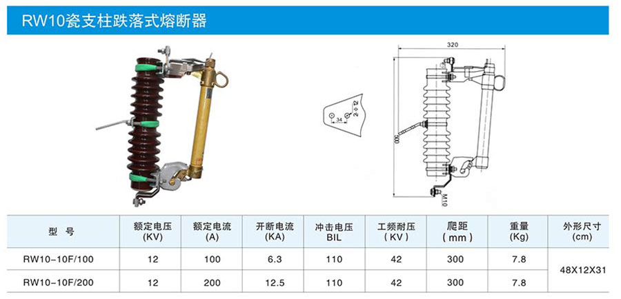 RW10瓷支柱跌落式熔斷器
